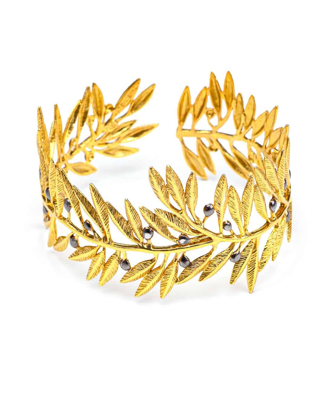 Il bracciale presenta una raffinata e intricata trama di foglie e rami di ulivo, che si intrecciano con grazia per creare un senso di fluidità e bellezza naturale.