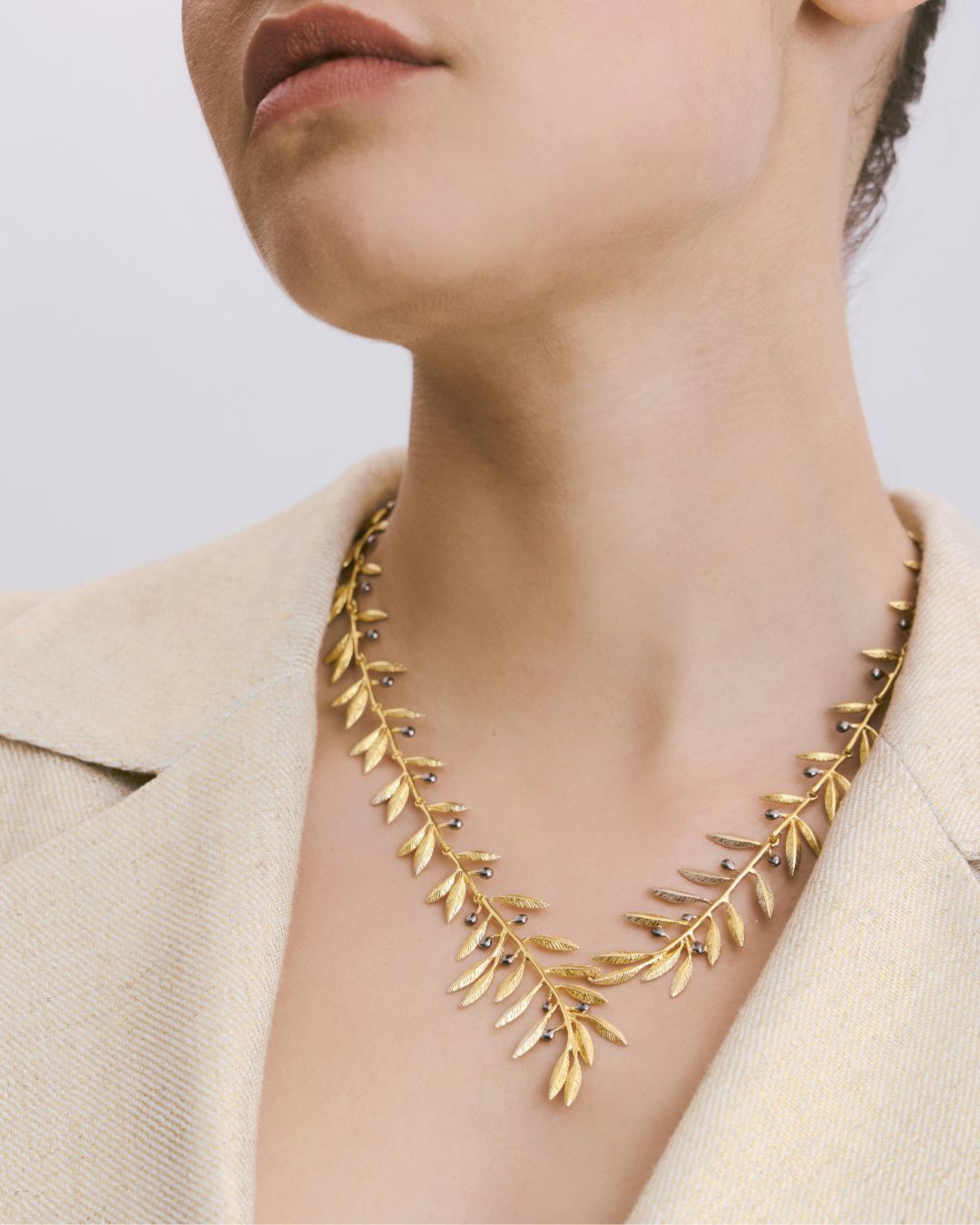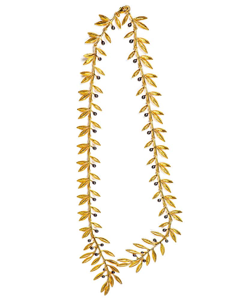 Questo gioiello rende omaggio al sacro ulivo di Atena: un segno di eleganza essenziale e bellezza senza tempo.