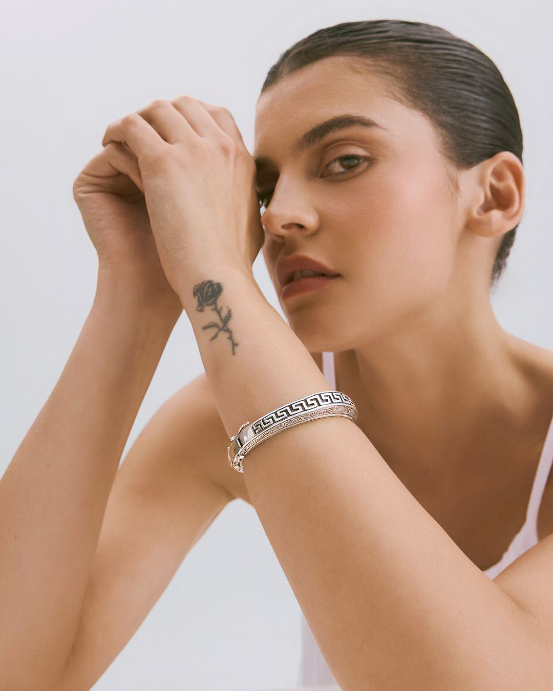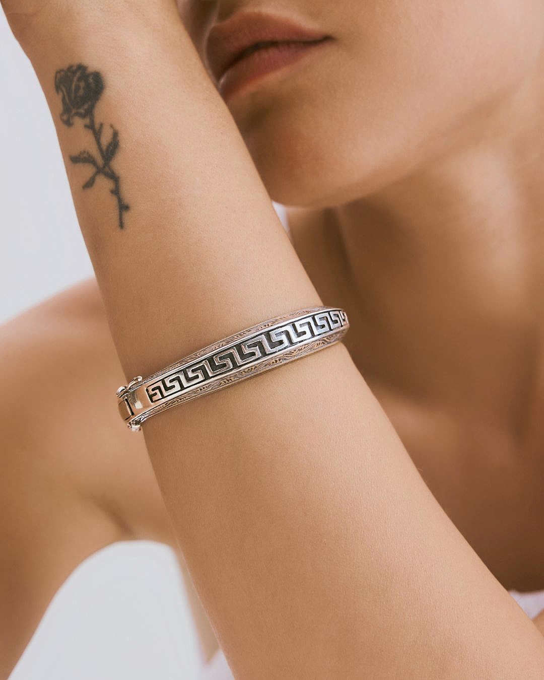 Il bracciale MEANDROS è un raffinato tributo all’eredita artistica e simbolica dell’antica Grecia.