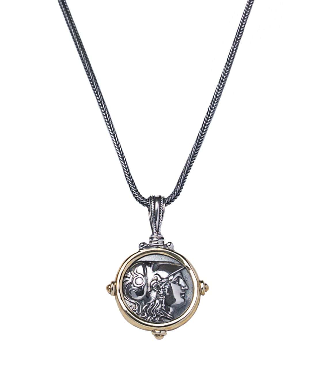 This pendant pays tribute to two iconic figures of Greek mythology.