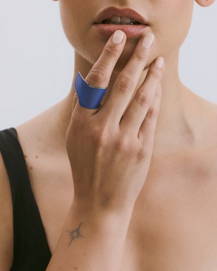 Handcrafted in bronze and fired at high temperature, it’s a bold, contemporary jewel designed to add a touch of color and personality to any look.